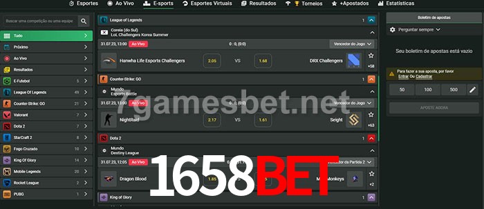 O 1658bet oferece uma grande seleção de opções de apostas em e-sports com probabilidades competitivas